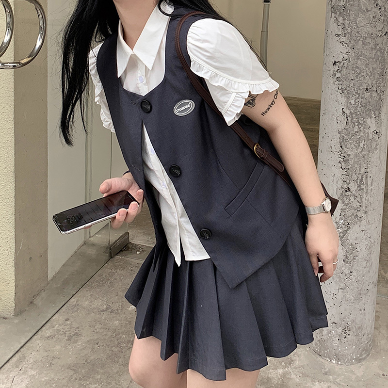 早秋女裝韓版簡約百搭寬松學生翻領(lǐng)排扣襯衫